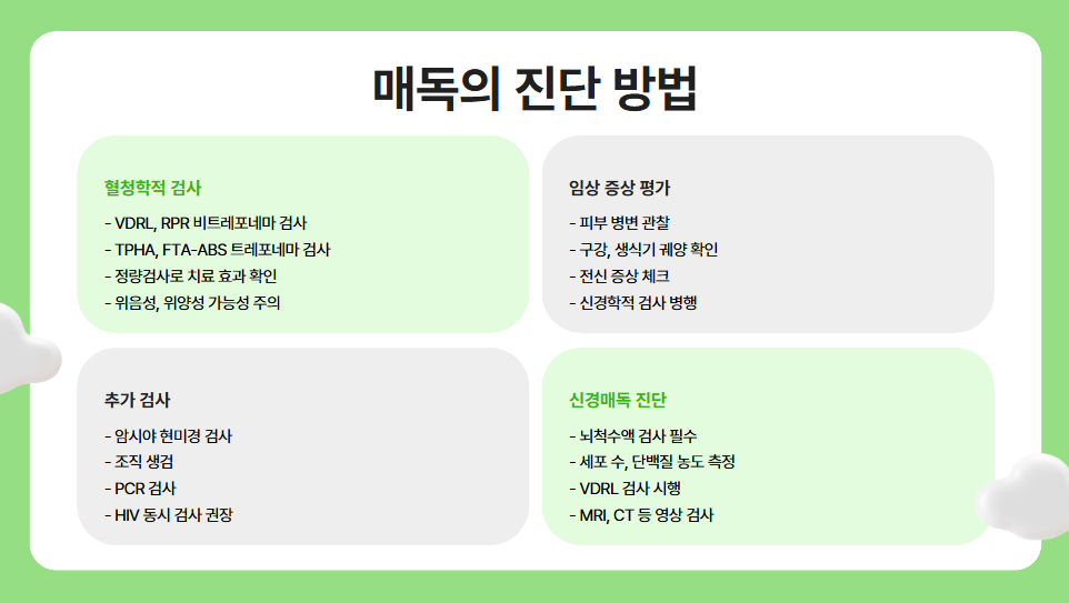 병원에서도 초기 증상이 뚜렷하지 않은 매독을 다른 질환으로 오인하거나, 환자 스스로 단순 염증으로 치부해 자가 진단을 내리는 상황이 발생할 수 있습니다. 조금이라도 의심된다면 혈액 검사를 포함한 성병 전반의 검사를 진행해 정확히 판단받는 것이 안전합니다.