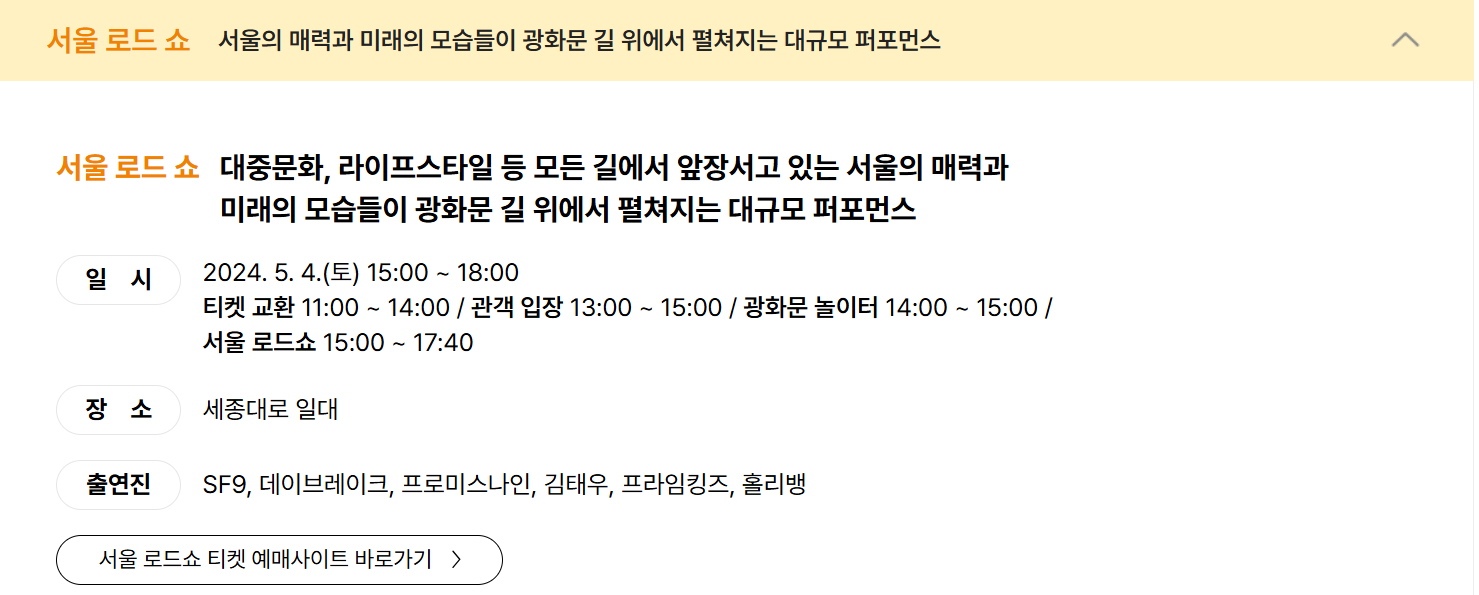 1. 서울 스프링 페스타 개막식 ‘서울 원더쇼’ 사전 예매 일정