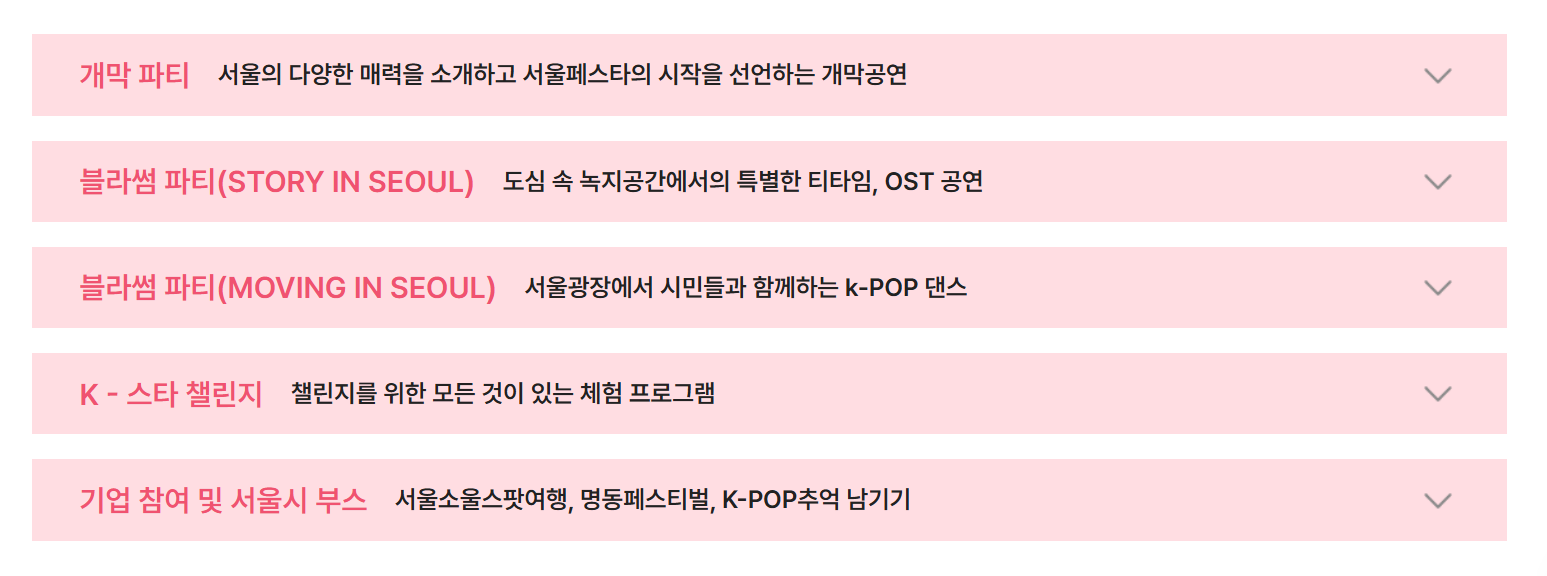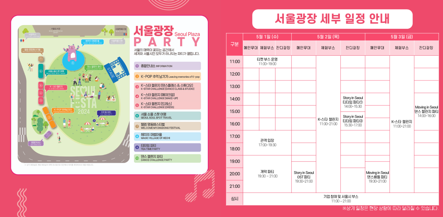 - 자세한 일정은 공식 홈페이지 및 인스타그램(@seoulfesta_official)에서 확인 가능