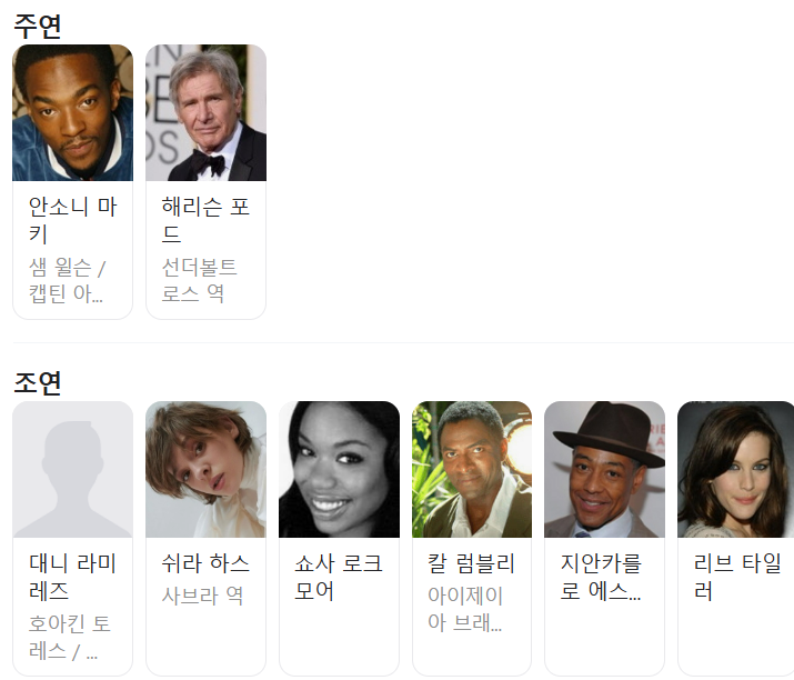 | 앤서니 매키 | 샘 윌슨 / 캡틴 아메리카 | 초능력 없이도 정의를 실현하는 새로운 캡틴 |