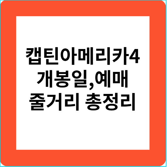지금부터 ‘캡틴 아메리카 4’의 개봉 정보, 예매 방법, 출연진, 줄거리, 관람 포인트 등을 자세히 살펴보겠습니다!