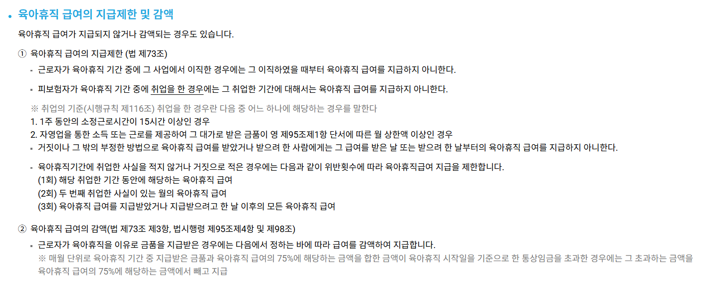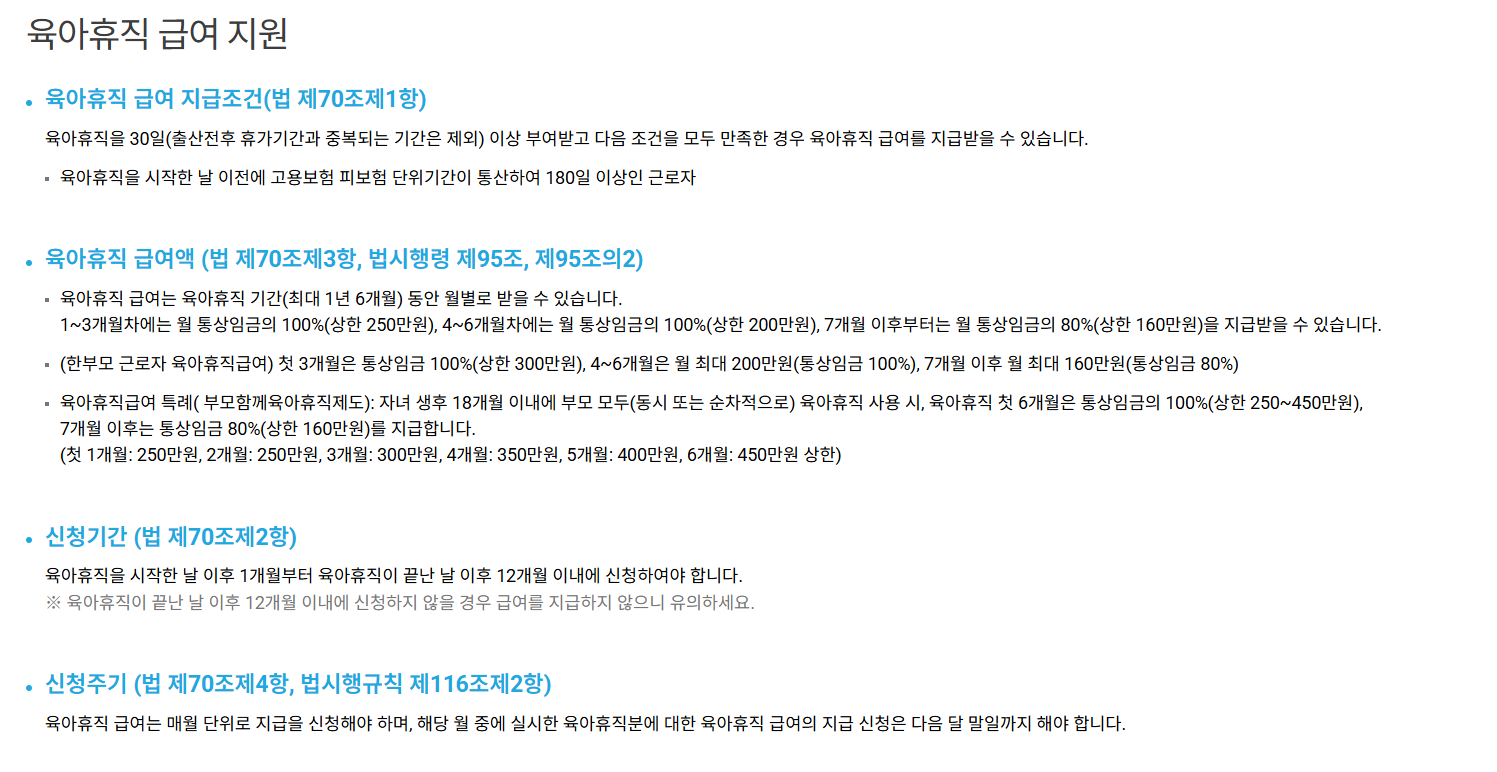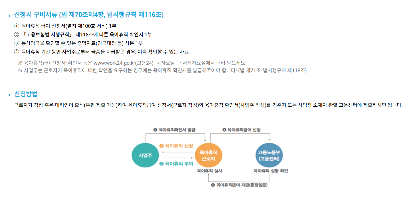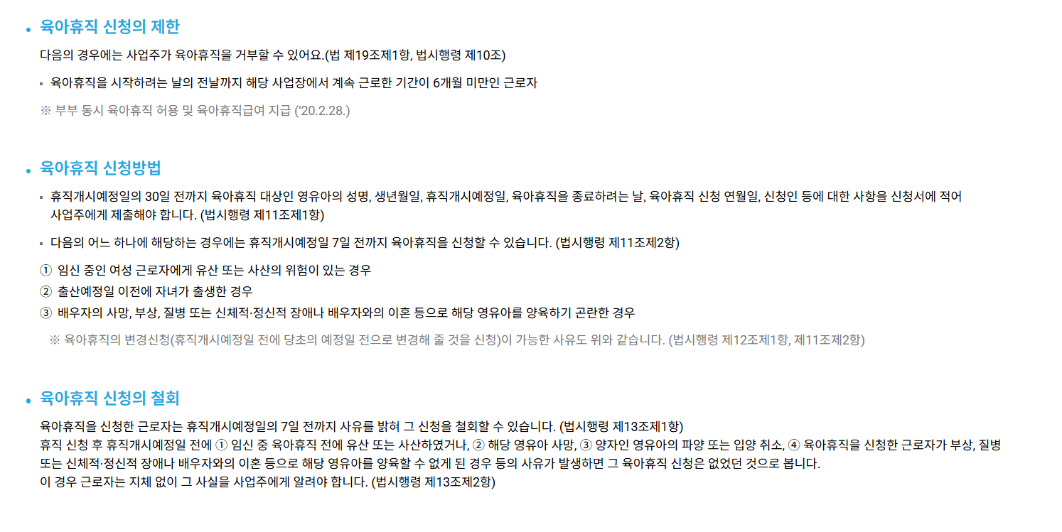✅ 육아휴직: 육아휴직 시작 1개월 전까지 사업주에게 신청