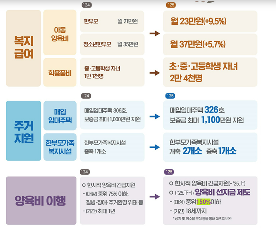 2. 2025년 한부모가정 지원금 혜택